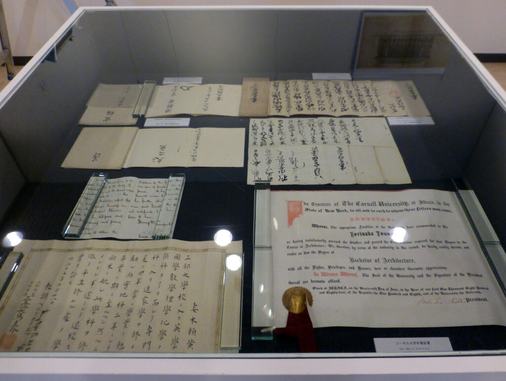妻木頼黄の蔵書類につきましては、妻木頼黄の没後(大正五年)程なくして本会に寄贈され、現在、本会図書館所蔵「妻木文庫」として広く利用に供されているところであります。また、昭和五〇年代には、妻木頼黄御令孫野津巻良郎様より「妻木頼黄木彫像」が本会に寄贈され、今回更に、妻木頼黄家文書類(「妻木頼黄家資料」)が本会に寄せられたことにより、妻木頼黄に関する資料が一括して本会におきまして保存公開される運びとなりました。